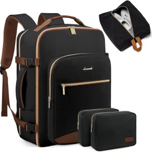 LOVEVOOK 40L Large Travel Backpack for Women Men, 17 Inch Carry on Backpack for Traveling on Airplane, Personal Item Bag Airline Approved, Business Causal Weekender Backpack, Black-Brown