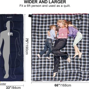 REDCAMP Cotton Flannel Sleeping Bag for Camping Backpacking, Adults Cold Weather Envelope Sleeping Bags with 2/3/4lbs Filling